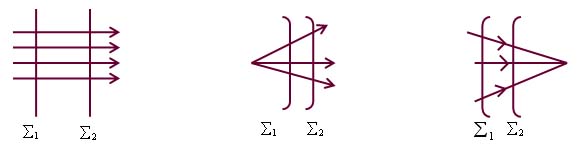 光線束在各向同性的均勻介質(zhì)中傳播時(shí),始終保持著與波面的正交性,并且入射波面與出射波面對應(yīng)點(diǎn)之間的光程均為定值。