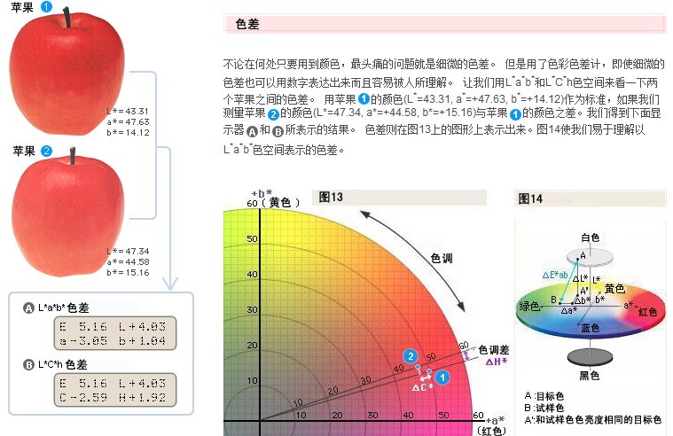 色差的程度。 從圖上所標出的兩個蘋果的值,我們就可以說蘋果