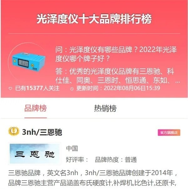 這兩個平臺,三恩時3nh、三恩馳都是排名比較靠前的,深得用戶的喜歡和信賴,也是國內老牌的外觀檢測設備生產廠家。毫不夸張地說,其生產的光澤度儀是可以閉眼入的程度。如果有任何光澤度儀的問題,歡迎訪問(http://www.gz9160966.cn/gallery-52-grid.html) 或者咨詢0755-26508999。