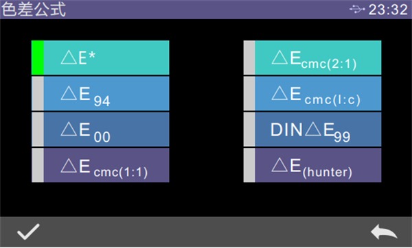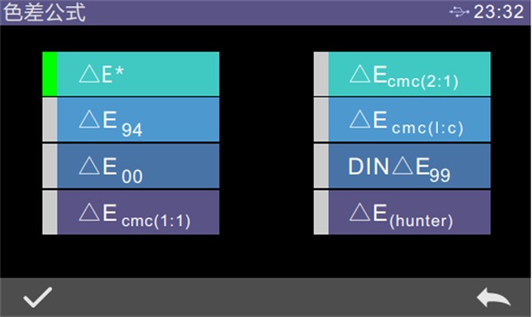 設置色差公式,用戶可以選擇△E、△Ecmc(2:1)、△E94、△Ecmc(l:c)等,選擇后,點擊“√”確認采用該色差公式,如圖所示: