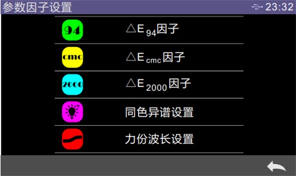 顏色指數界面可選擇當前使用的色差公式、可選色度指標、參數因子設置,以下結合實例進行了介紹。