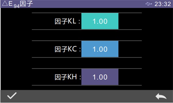 點擊因子KL、因子KC、因子KH的值,進入編輯界面(如圖44所示),然后輸入新值,點擊“√”確認保存參數,點擊“”則取消保存設置。