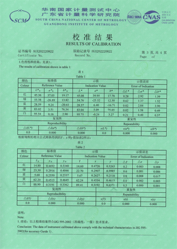 為了觀察得更為直觀,可以參看一級色差儀計量證書.
