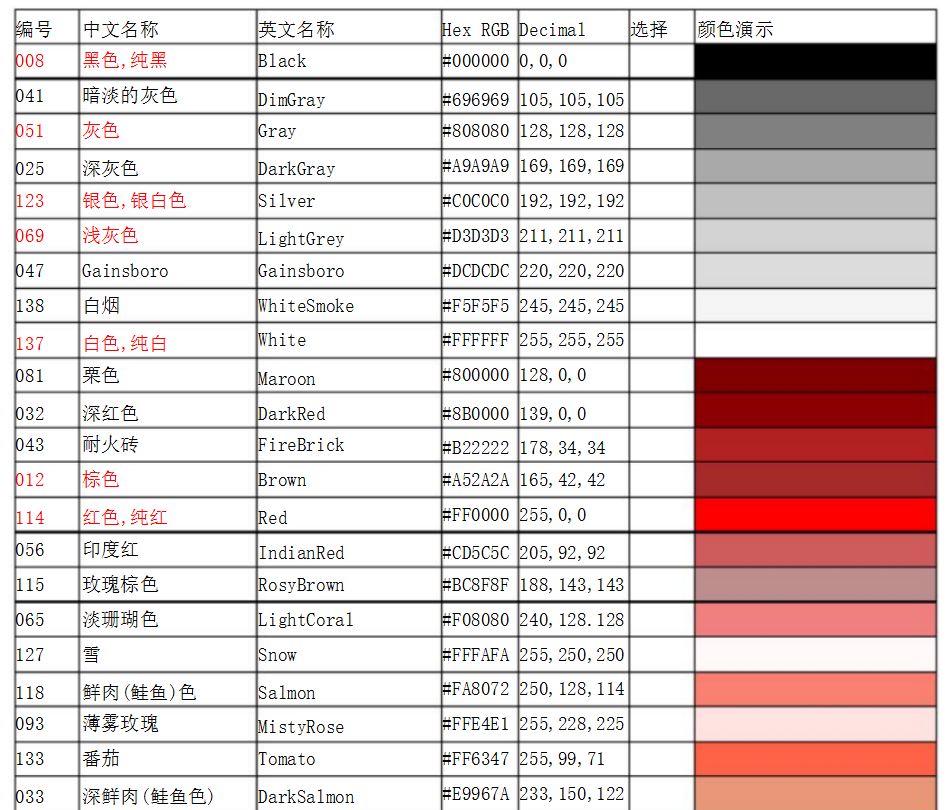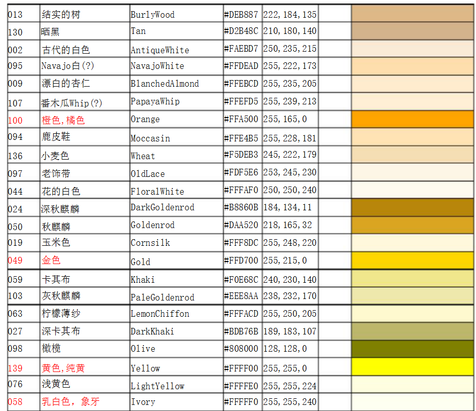 RAL.色號(hào)對(duì)照表