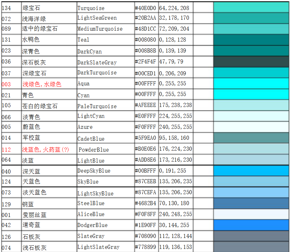 工業(yè)國(guó)際標(biāo)準(zhǔn)色卡對(duì)照表