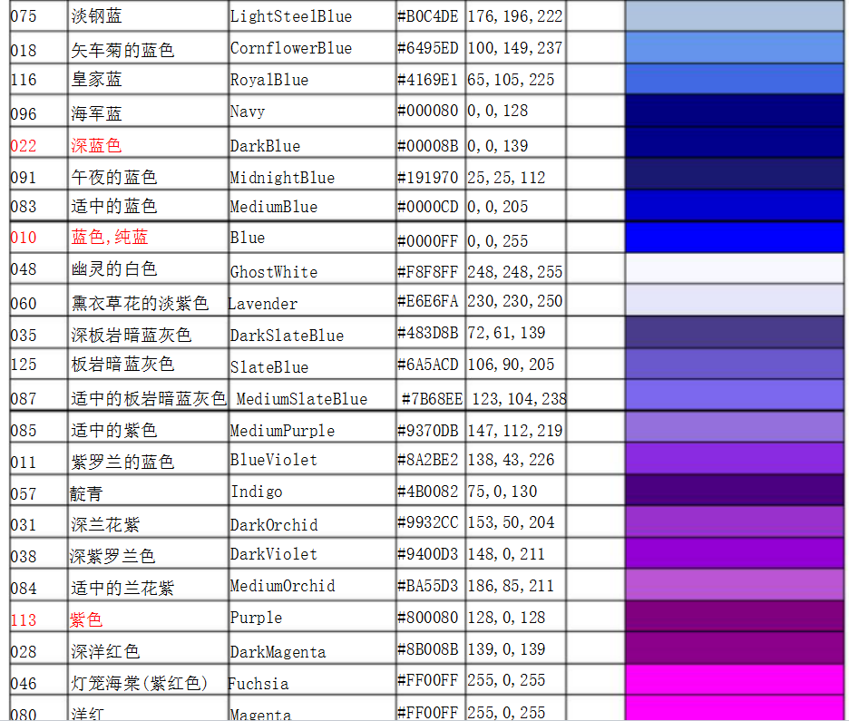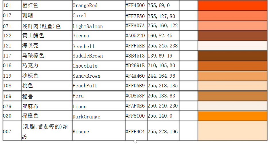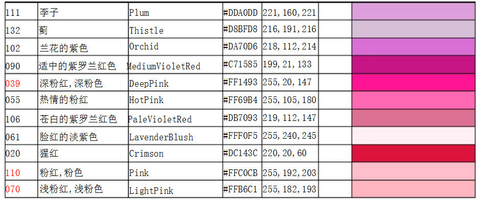 常用顏色國(guó)際色卡對(duì)照表