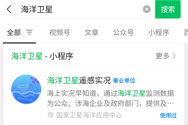 獲取海洋衛星遙感實況小程序方式很簡單,可在微信點擊發現——小程序搜索——輸入“海洋衛星遙感實況”或“海洋實況”,添加后即可享受最精準的海洋衛星數據產品服務。