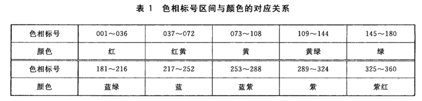 2.2.2色相標號區間與顏色的對應關系色相標號區間與顏色的對應關系見表1。