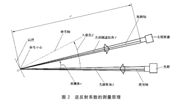 試樣參考中心對光源孔徑張角及對光探測器孔徑張角應分別不大于12’。試樣整個受照區域內的垂直照度不均勻性小于5%,試樣參考軸相對于光源軸的人射角(3)應能在0*~40*范圍內變化。觀測軸相對于照明軸之間的觀測角(a)應能在0.2*~2"范圍內改變。