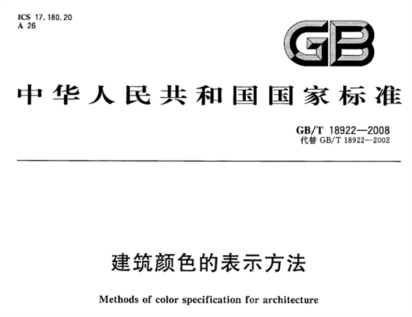 中國建筑色卡的國家標準,正式編號為GB/T 18922-2008《建筑顏色的表示方法》,是中國建筑領域色彩標準化的一項重要成果。本文對該標準進行了簡單介紹。