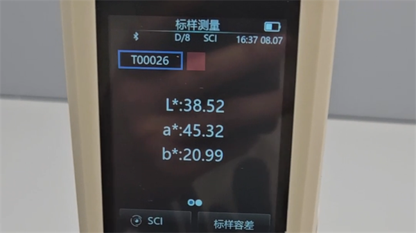 4. 讀取結果:測量完成后,CR8分光色差儀將在屏幕上顯示粉餅樣品的色度坐標(如L*、a*、b*值)和色差值(如ΔE)。這些數值反映了粉餅顏色的亮度、紅綠偏差和黃藍偏差以及與標準色的差異程度。