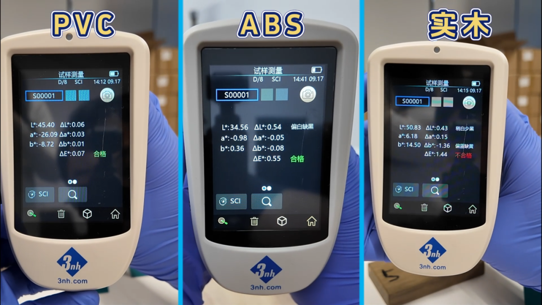 三恩時(shí)便攜式分光測色儀,可以直接測定△Eab*值,通過設(shè)置容差,儀器會(huì)直接判定封邊條的顏色是否合格。在封邊條的來料檢測、成品檢測以及封邊條和板材的配色中均可發(fā)揮重要作用。