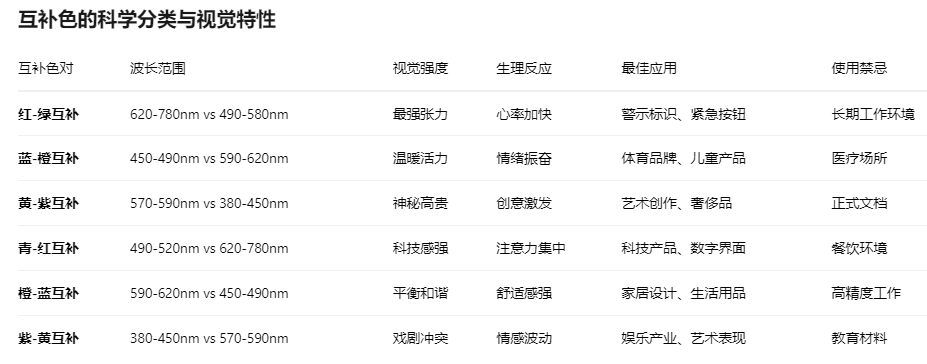 互補色的感知建立在人類視覺系統的對立加工機制上。視網膜中的雙極細胞和神經節細胞以對立方式組織:紅/綠、藍/黃通道相互抑制。當觀看紅色時,紅/綠通道中的紅色信號占主導,綠色信號被抑制;轉向綠色時,這種抑制關系反轉,產生強烈的對比感。這種生理機制解釋了為什么互補色組合能產生最大的色彩活力。