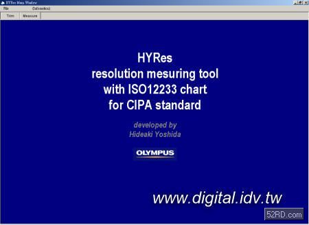 以解像力測試來說,日系和美系的標準同樣根植于 ISO 12233 之上??墒窃趹蒙蠀s有顯著的不同,東西方文明本就存在著差異,何者好用耐用,其實也是因人而異的問題。首先介紹日系的解像力檢測軟件 HYRes 3.1,這套軟件是 CIPA 日本相機工業協會制訂的檢測標準 ,協同 Olympus 公司共同開發,使用上如同日本的產品一樣,相當簡單且一目了然。