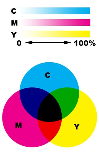 每一種色料的使用量從0%到100%,由于CMY三種色料混合能產生許多顏色,它們兩兩 相加形成的顏色又正好是R、G、B三色。由于CMY三種色料在打印、印刷過程中并不能形成純正的黑色,因此需要單獨的黑色色料K,由此形成CMYK這種色 料模式。色料量越大,顏色越重、越暗;反之,色料量越少,顏色越亮。沒有色料的地方看到的是什么都沒有印上的白紙,所以CMYK模式被稱為減色法。