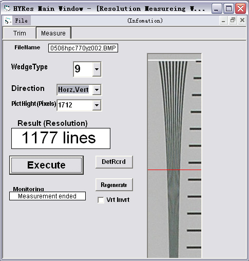 分辨率測試采用了國際標準的ISO12233分辨率卡進行測試,采用了統一拍攝角度和拍攝環境,而分辨率的計算使用了奧林巴斯開發的HYRes軟件,分開垂直分辨率和水平分辨率兩部分進行。