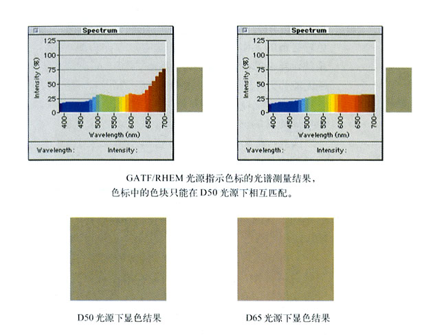 色度計不能探測出同色異譜。它們只能夠告訴你在特定的照明條件下兩個顏色樣品是否匹配,但是它們沒法說清這種匹配是不是在這個特定照明和觀察條件下的同色異譜,也不能告訴你兩個樣品是否真的是具有相同的光譜特性,是否能夠在所有照明體下都是相互匹配的。幸運的是,對于大多數色彩管理用途來說,在一種照明條件下計算顏色匹配已經足夠了。