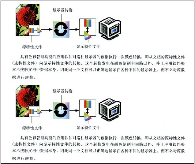 然而,從流程的觀點看,顯示的轉換并不在色彩管理回路之中。具有色彩管理功能的應用軟件是通過顯示卡來進行顯示顏色數據轉換的,而軟件本身根本沒有接觸到這些顏色數據。