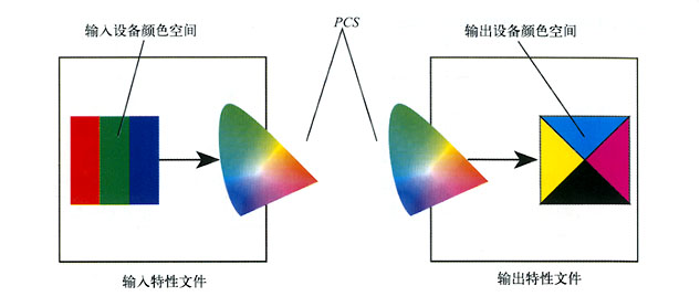 綜上所述,色彩管理系統(tǒng)進(jìn)行顏色轉(zhuǎn)換的各個(gè)步驟如圖3-7所示。