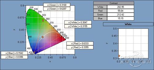我們在本次評測中使用了PConline評測室花巨資購進的日本CS-200分光色度計進行客觀評測,通過數據指標的方式判斷液晶屏幕的優劣。CS-200分光色度計可以測試多種光度指標,包括亮度、色度、色域等,特別是在低亮度的情況下仍然能夠保持非常高的精度,能夠精確的反映液晶屏幕的性能指標。