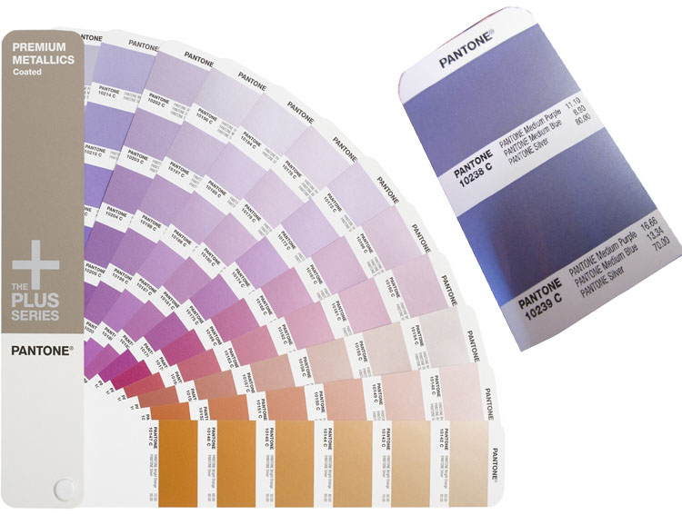 全新的PLUS系列高級金屬色— 光面銅版紙[PLUS SERIES PREMIUM METALLICS]包含300種光彩奪目的金屬色,以滿足人氣急速攀升的特效油墨需求。PLUS系列金屬色更閃亮耀眼,可輕松涂層而絲毫無損光澤度。其印后壽命更長,無需擔心脫色或產生斑點。扇形指南按色譜順序排列,使得色彩選擇更加直觀。提供油墨配方。包含設計軟件。只提供光面銅版紙。