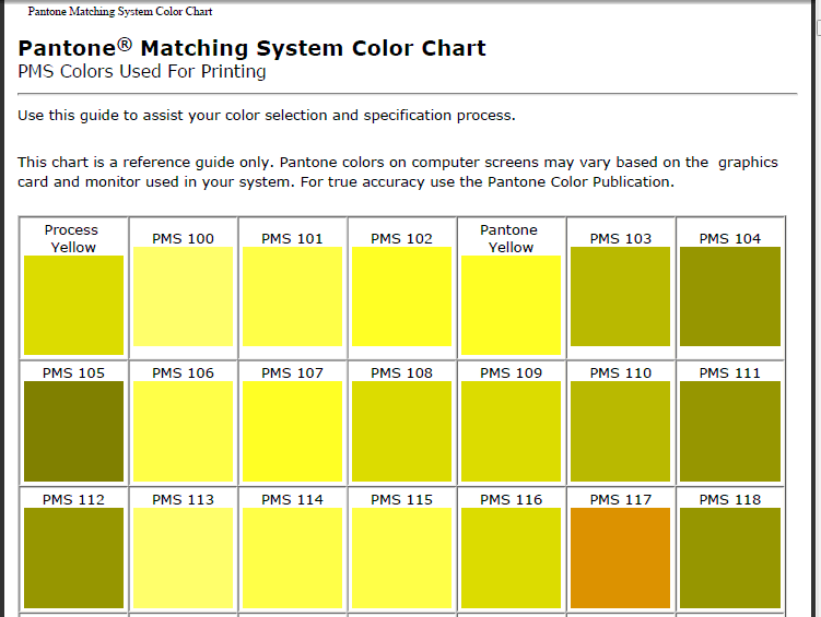 Pantone Matching System Color Chart PMS Colors Used For Printing