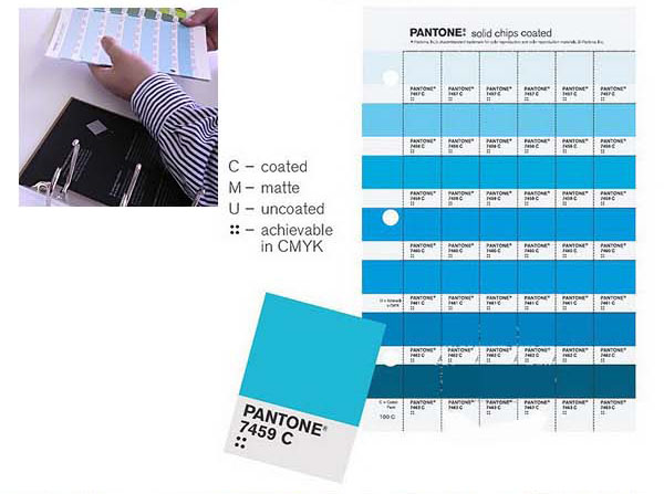 C色卡:獨立補充頁,每張包括七種PANTONE專色,各附六張可撕下使用的色票,例如:Pantone 332C 或 Pantone 7525C