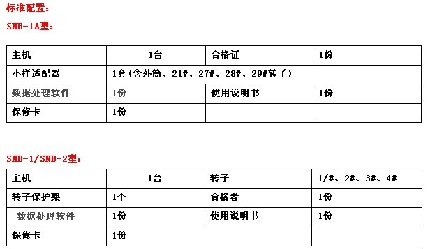 型 號:SNB-1 /SNB-1A/ SNB-2 出廠報價:6500 / 6500/7480 SNB系列的數字式粘度計采用16位微電腦處理器為核心的步進電機高細分驅動技術、程序控制、轉速平穩、操作簡便;液晶背光顯示屏直接顯示粘度、轉速、百分比扭矩、轉子編號以及被測液體的溫度等信息,有出錯報警等功能。采用先進的準確性校準技術,每一檔的準確性、線性全部經過外接計算機用不同粘度的標準硅油進行計量校正。確保了儀器的高精度、高準確性和高重復性。主要特點:①被測試樣的粘度值直接顯示在液晶屏上,無需人工計算;②采用16位微電腦處理器為核心的步進電同高細分驅動、液晶背光顯示;③采用程控電機控制,市電頻率變化不影響測量精度;④整機一機化設計,操作方便;⑤ SNB-1A型專配小樣適配器,用于小劑量樣品。與常用的1~4#轉子需要200~400ml樣品量不同,使用小樣適配器只需20ml的樣品量既可。 詳細技術參數: