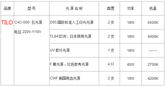 標(biāo)準(zhǔn)光源對色燈箱參數(shù):