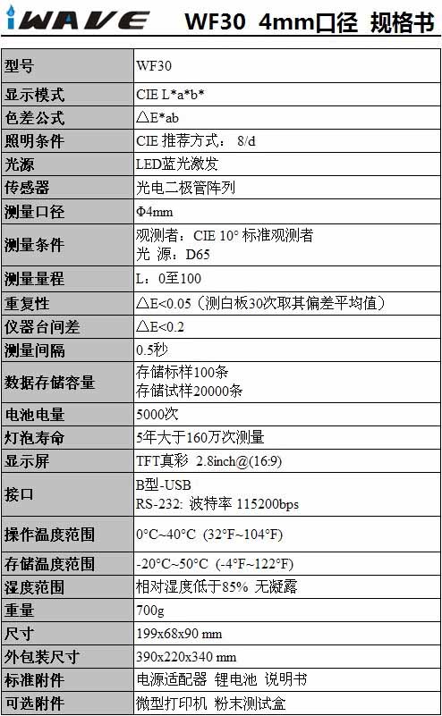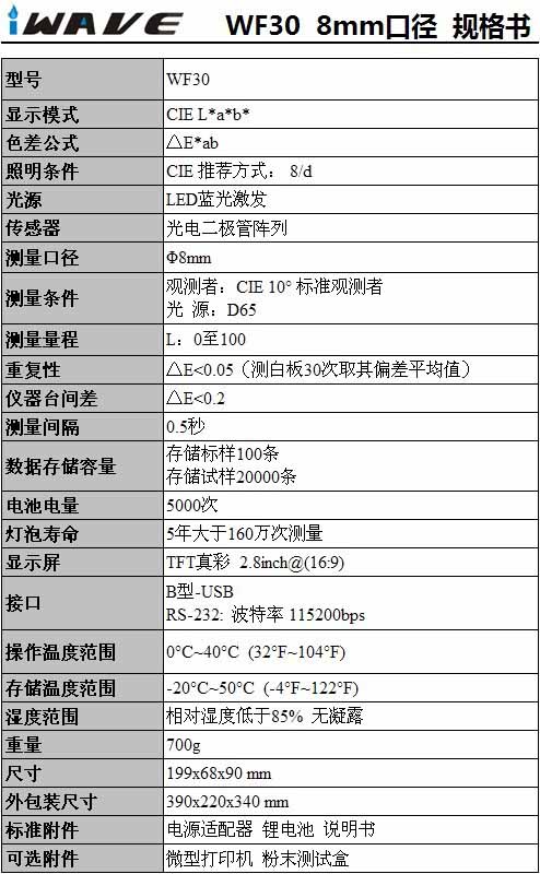 WF30 WF28 WF32 8mm或4mm精密色差儀
