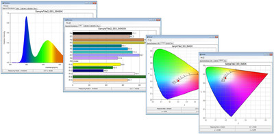 | 色彩顯示模式 | 相關色溫Tcp、與黑體Δuv的差異、XYZ、xy、u'v'、特征波長λd、色純度Pe、光譜輻射照度、EV、CRI(Ra、Ri)、峰值波長λp、曝光值 |