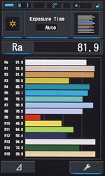 CL-70F可輕松處理CRI測量數據。其通過簡單的條形圖顯示包括所有單獨指數(R1至R15)在內的Ra值。