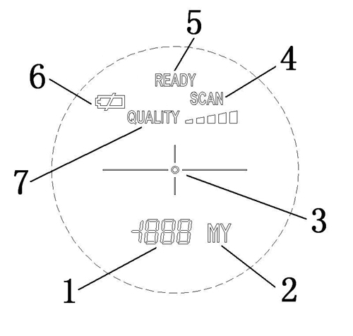 3 、 Press the "ACTION / ON" button one time, and begin Ranging 1, the top-right corner of a simulated laser flashes signs in the loop, said it is launching laser. The data show that measurement is in the bottom, also showed that objective reflection of the level of quality instruction, is divided into five, from left to right by five small components, small reflection that the more the stronger. Distance show "----" 4 short horizontal line, that goal can not be measured too far back. Data show that will remain until the next operation or the power of automatically.